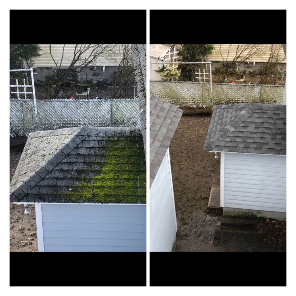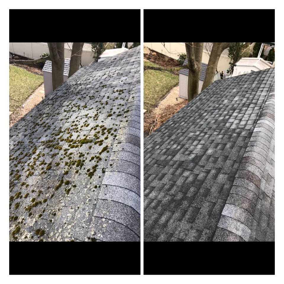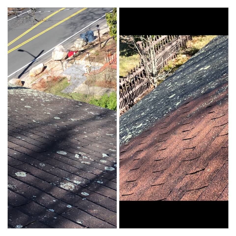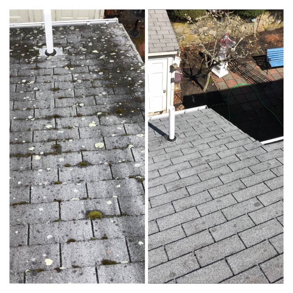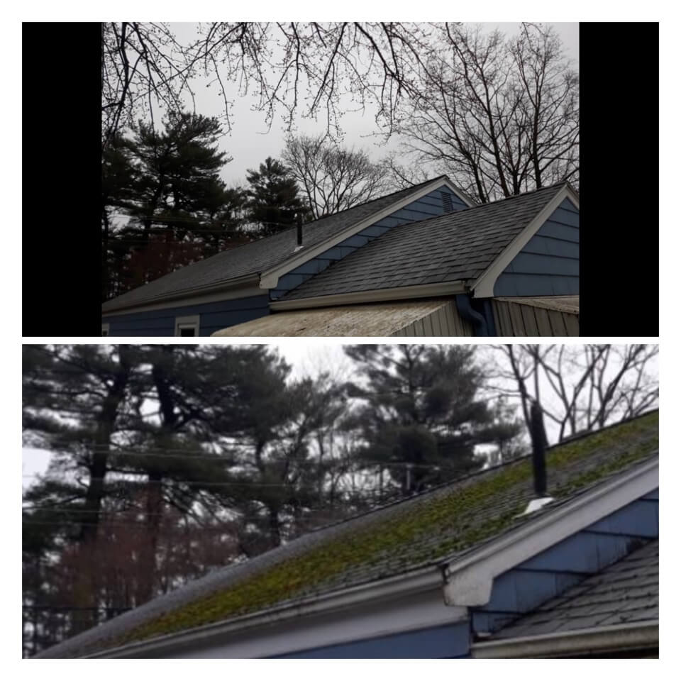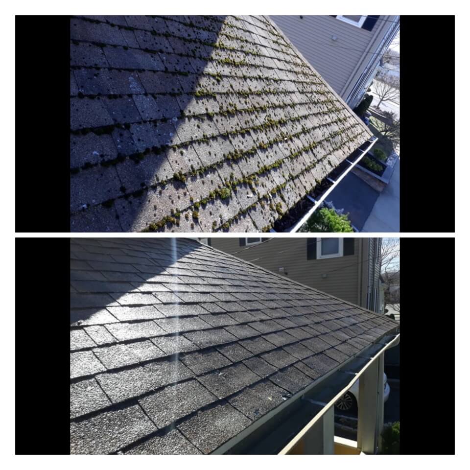 HiCleaners is the most experienced company in Revere, MA that deals with roof washing and roof soft washing. All of our employees are trained to recognize precise solution mixing ratios to provide you with the safest and most effective soft washing service. Roofs are a commonly neglected part of a house due to the fact that most people don’t have ladders to access it, so it is very easy to just leave it alone and forget about problems that may start to arise. Just like many home owners, discoloration and small bits of moss on a roof can be overlooked because of the misconception that it is just aesthetic. However, it isn’t just aesthetic, the moss slowly lifts the granules off the shingles which in turn shorten the life of the shingle. The moss also spreads, just like any bacteria if it is left alone for too long, it can quickly become a problem that spirals out of control. Call HiCleaners for a free quote, we only use the most advanced eco-friendly solutions and equipment to make sure the job is done right, for the safety of the employees, your plants, grass, pets, and children.